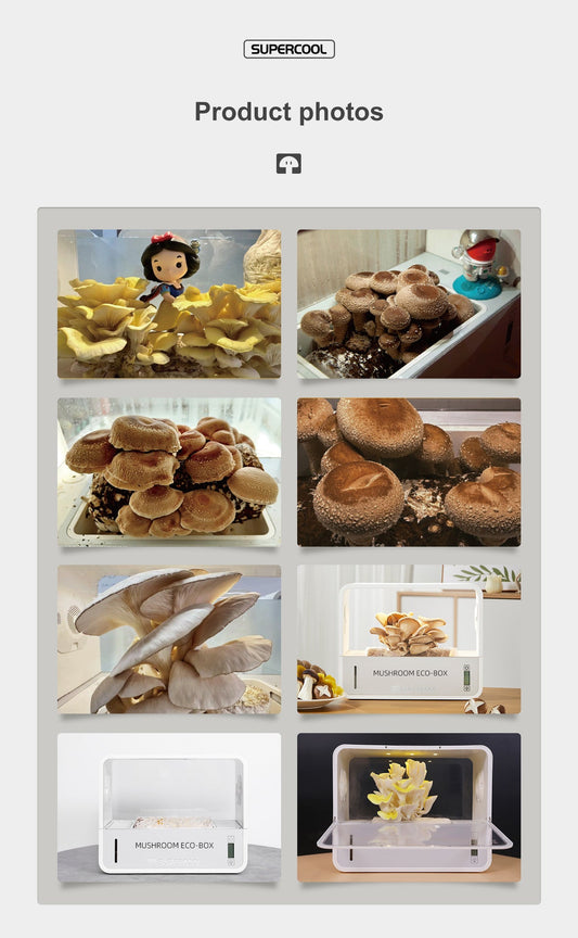 SUPERCOOL Smart Mushroom Eco-Box with Temperature & Humidity Control – Indoor Desktop Grow Kit for Home Mushroom Cultivation