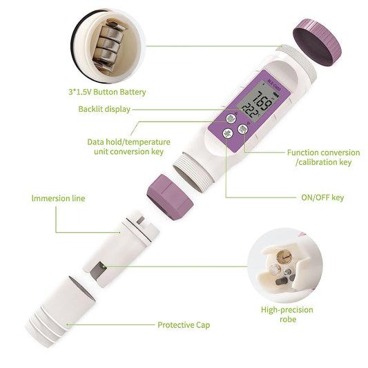 YIERYI pH Meter TDS Meter , 4 in 1 EC TDS Temp pH Tester for Hydroponics, Digital EC Meter for Nutrients Growing, Indoor Garden