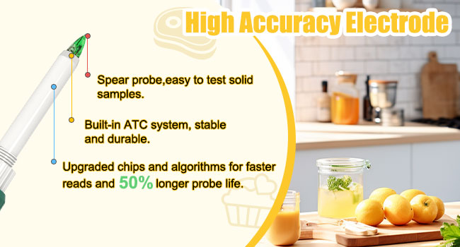 Professional Food Grade pH Tester for Solid/ Semi-Solid/ Liquid