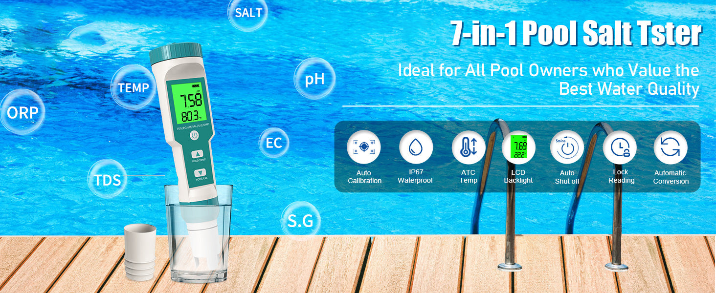 New Update 7 in 1 pH Salt Tester for Pool Aquarium Hydroponics Drinking Water