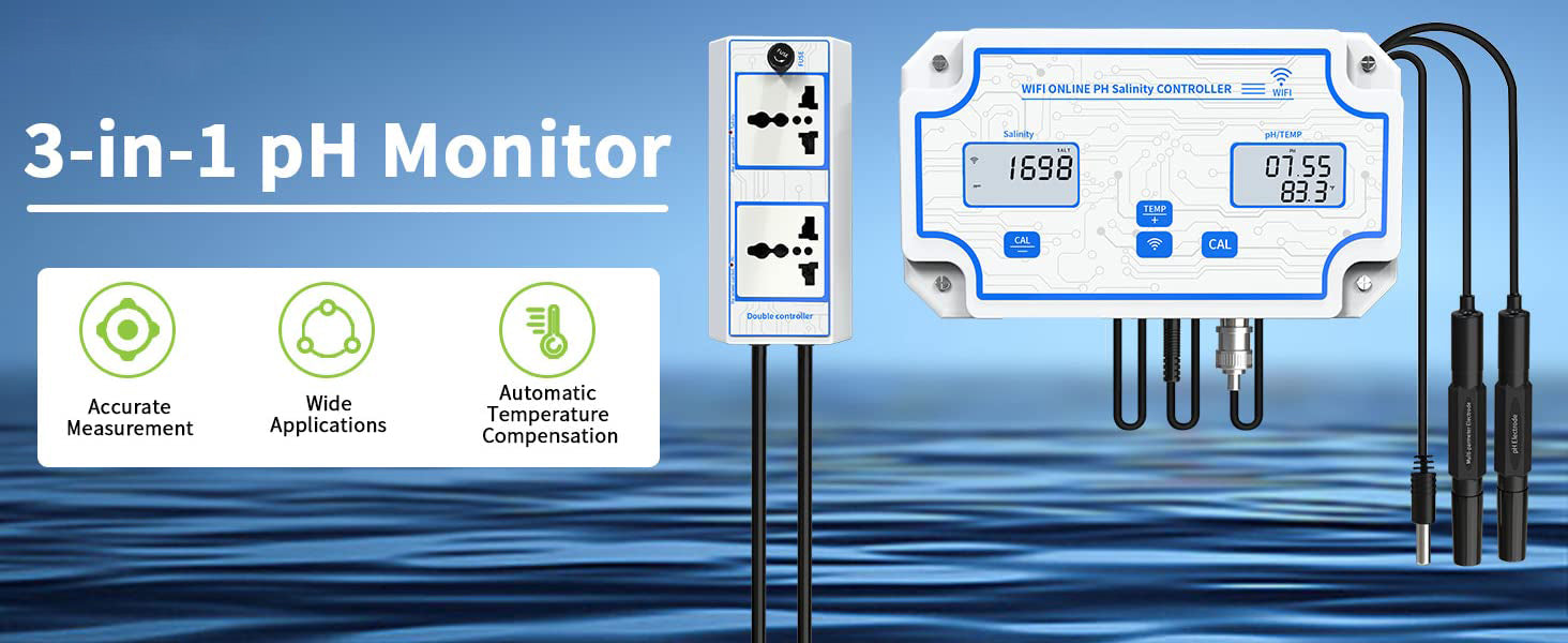 You can use pH monitors to monitor the pH, salinity, and temperature of any type of water, whether in aquariums, swimming pools, spas, laboratories, hydroponics, fish tanks, seawater aquaculture, ponds, etc, or in-situ water analysis programs. easy to use and provides an instant display of results.
