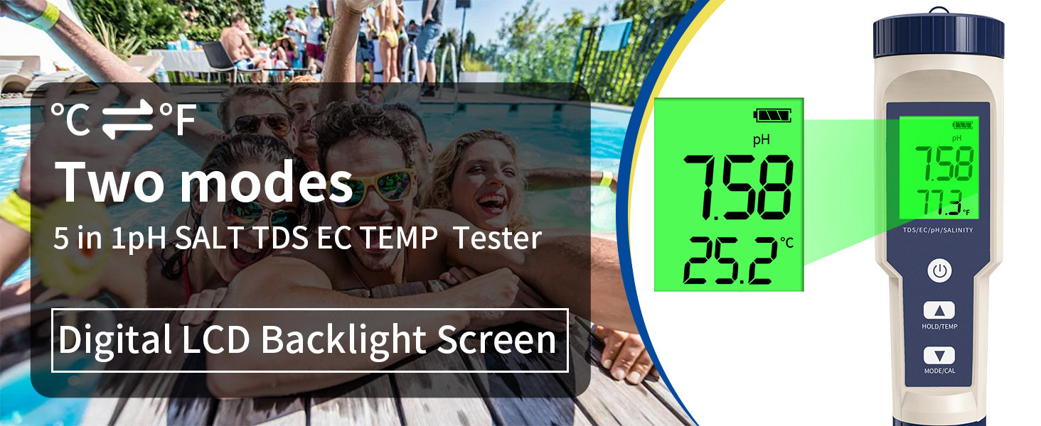 5 IN 1 pH SALT TDS EC TEMP Tester