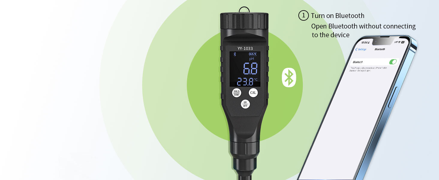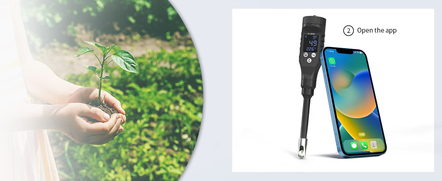 Accurate and real-time Bluetooth data transmission allows you to easily save, manage and share test data. Insert the soil meter's electrodes into the soil and the reading will quickly appear on the LCD display. After 5 minutes without any operation, it will automatically enter standby mode, and data can also be recorded normally.
