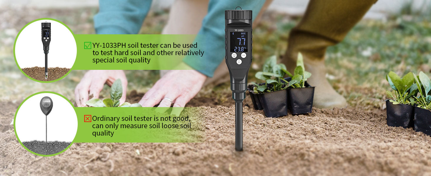 Digital soil tester can measure temperature and pH value (acidic or alkaline) in soils and other media. In addition, our soil pH meter has a unique design that can measure hard soil, dry soil, sandy soil, and other special soil, great for gardening, lawn, farming, farm, indoor & outdoor use.
