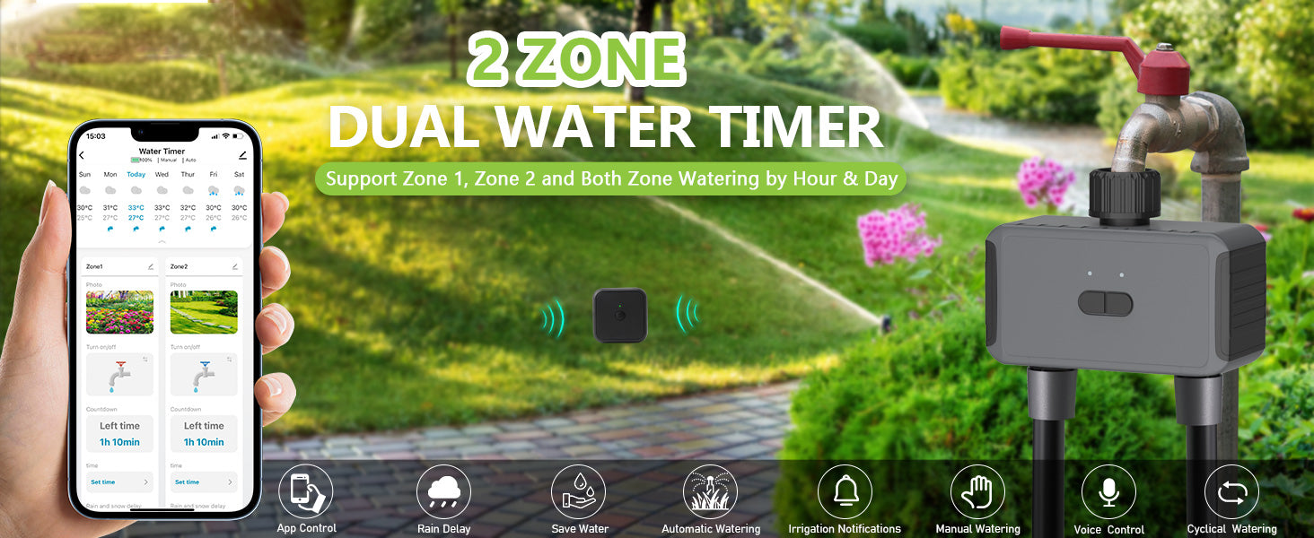 The watering timer is compatible with Alexa and Google Assistant, allowing you to turn the garden hose timers for watering on and off using simple voice commands.